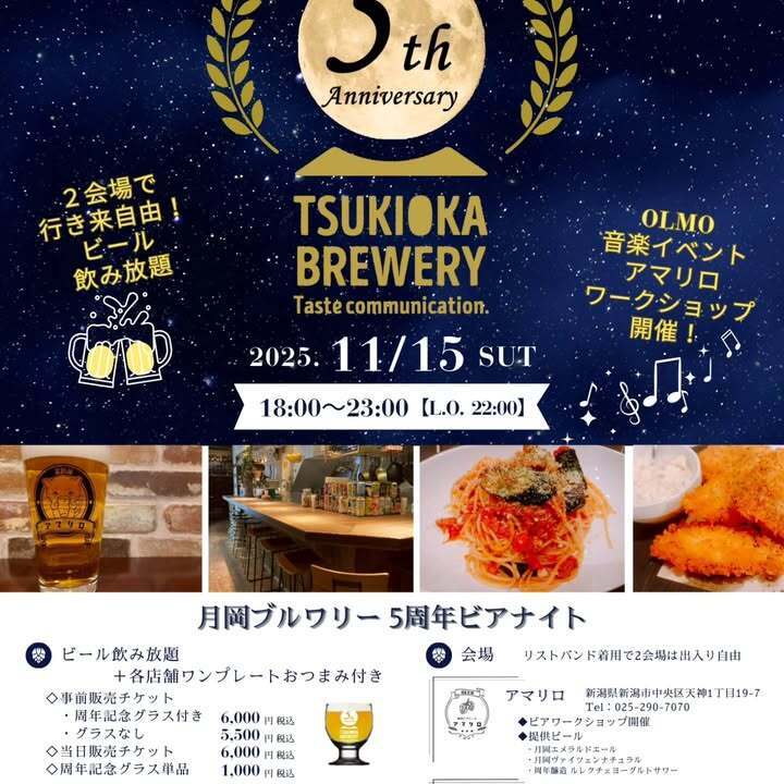11/15日の月岡ブルワリーさんとのコラボイベントのチケットも引き続き販売中です